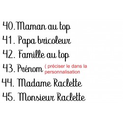 Penser à me préciser dans la personnalisation le numéro du modèle choisi ( et prénoms si il y a) pour le plateau ainsi que le numéro des 8 phrases choisies pour les spatules.