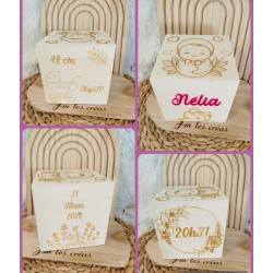 Personnalisé avec son poids, sa taille, heure et sa date de naissance ainsi que son prénom découpé dans du plexiglass de la couleur de votre choix.