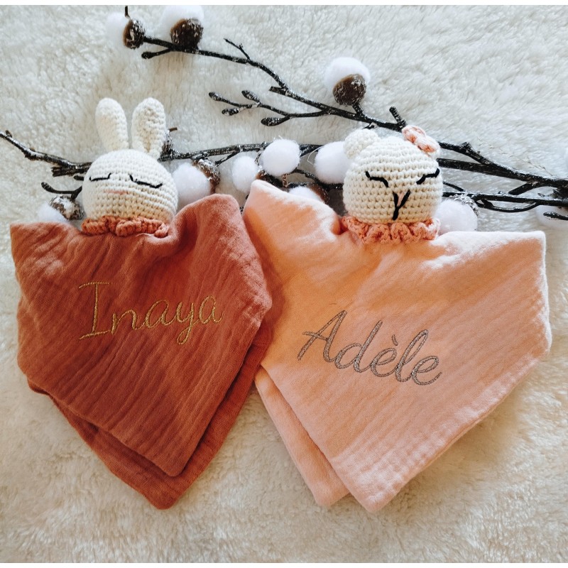 Un doudou brodé au prénom de l'enfant, un cadeau personnalisé qui fera plaisir et qui suivra bébé partout!