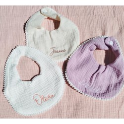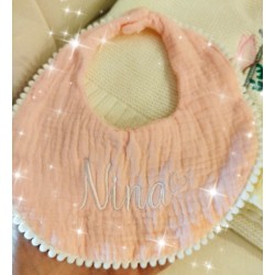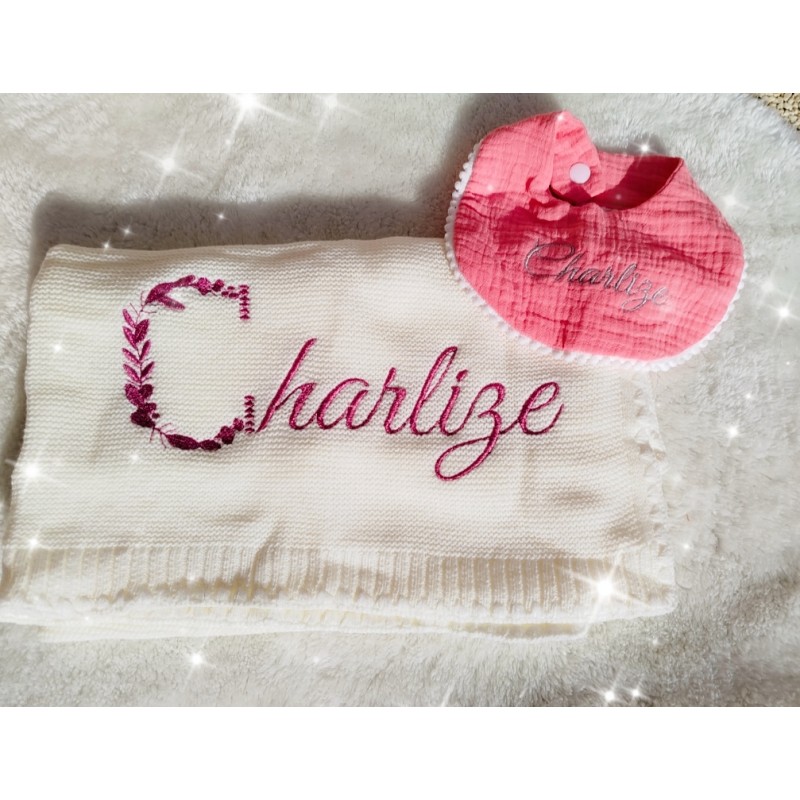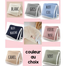 Un petit cadeau sera glissé avec la couverture ...un jolie bavoir brodé également (couleurs aléatoires) , de la même forme que sur le modèle.