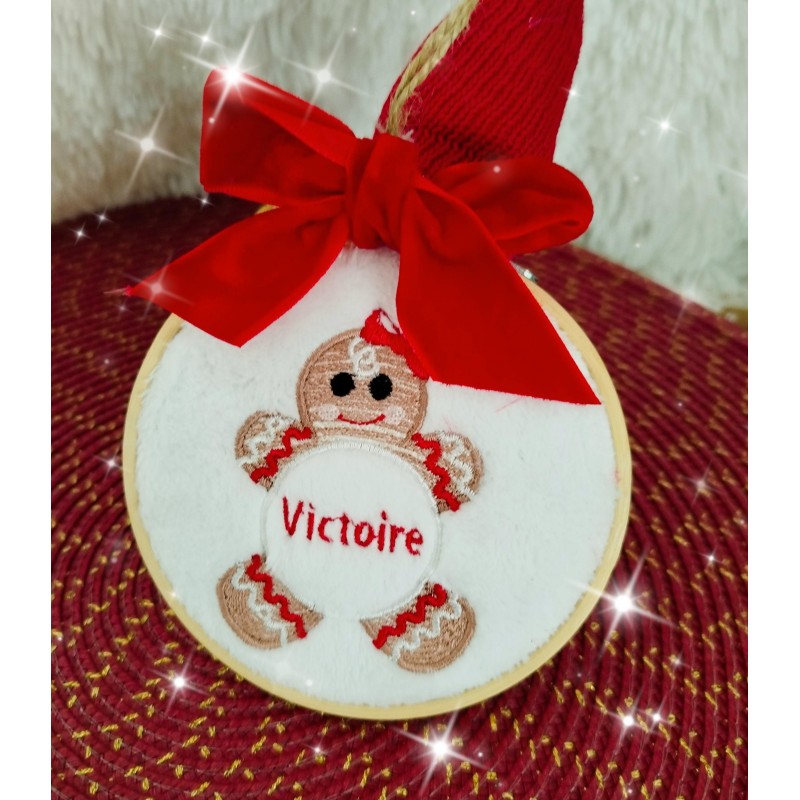 Dans la personnalisation, précisez moi la couleur du tissu, du nœud et le prénom avec la couleur que vous voulez pour le prénom suivant le tissu que vous avez choisi! Comme sur les modèles si prénom en vert le pain d'épice aura du vert aussi.