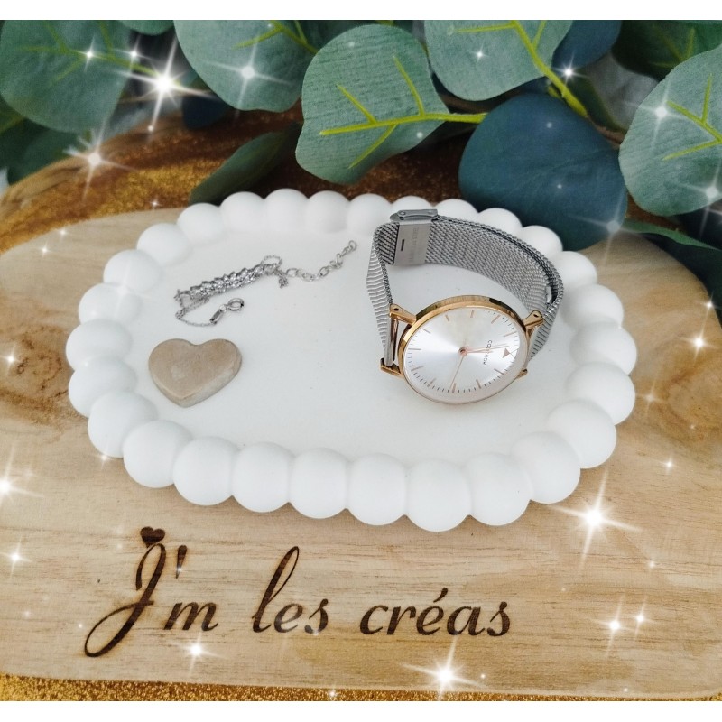 Un petit coeur de couleur fait également en résine de la couleur de votre choix (préciser le dans la personnalisation) sera mis sur le plateau.