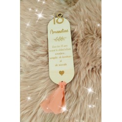 Un cadeau pour les lectrices ! Un marque page en bois personnalisés pour leur anniversaire ! Ici pour les 18 ans d'une jeune fille, mais bien sûr tout les âges sont possibles et le texte est au choix. Le coeur sera gravé sous votre texte comme sur le modèle.