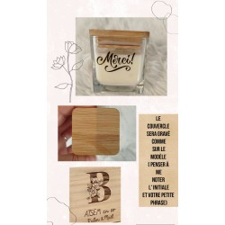 Le couvercle en bois peut être gravé par in initial fleuri et un texte en dessous (voir photo) ou alors juste un petit texte.