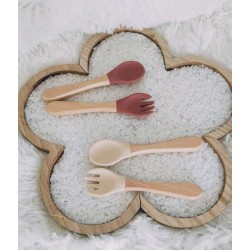 Une cuillère et fourchette avec manche en bambou naturel, biodégradable et écologique. Les embouts sont en silicones, ce qui permettra à bébé de ne pas se blesser et de pouvoir aussi le mâchouiller. ( Sans composants chimiques: zéro Latex, zéro plastique, zéro phtalates)