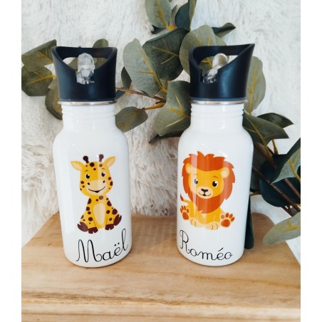 Gourde en acier inoxydable avec paille intégrée pour permettre à votre enfant de boire facilement.